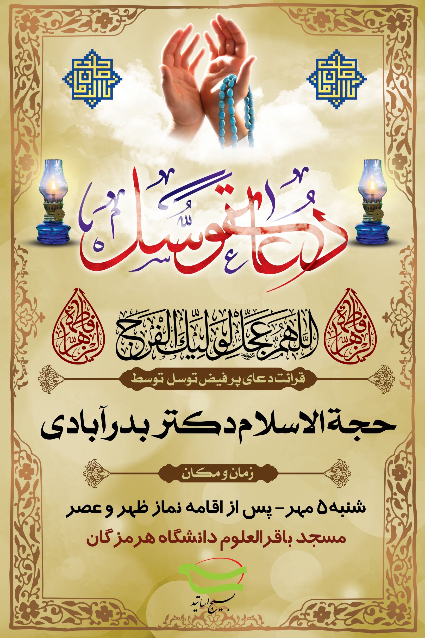 دعوت به مراسم معنوی دعای توسل به حضرات معصومین (ع) و شهدا به مناسبت هفته دفاع مقدس و آغاز سال تحصیلی