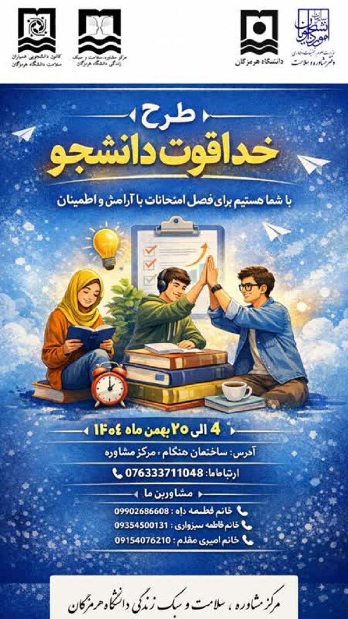 🗳️انتخابات کانون همیاران سلامت دانشگاه هرمزگان روز دوشنبه ۱۹ آبان‌ماه ۱۴۰۴ با حضور جناب آقای دکتر هادی سلیمی (رئیس مرکز مشاوره، سلامت و سبک زندگی) به‌صورت حضوری در سالن همیاران مرکز مشاوره دانشگاه هرمزگان برگزار گردید.