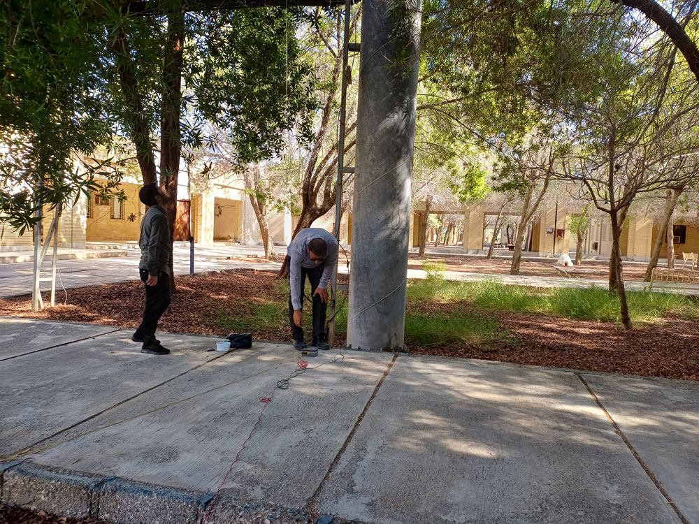 چاه ارت دکل مرکز فناوری اطلاعات و دکل مخابرات واقع در فضای مجاور مرکز فناوری اطلاعات توسط دکتر پوراحمدی از اعضا هیأت علمی گروه برق دانشگاه مورد بررسی قرار گرفت در این بررسی مقاومت زمین اندازه گیری گردید و نتایج آن جهت اقدامات بعدی در دستور کار قرا گرفت